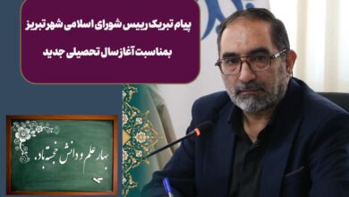 پیام تبریک رئیس شورای شهر تبریز در آغاز سال تحصیلی